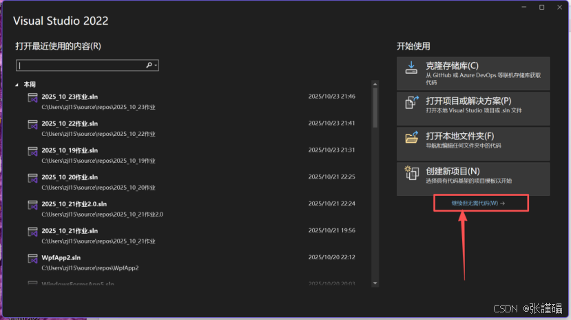打开vs,点击继续无需代码