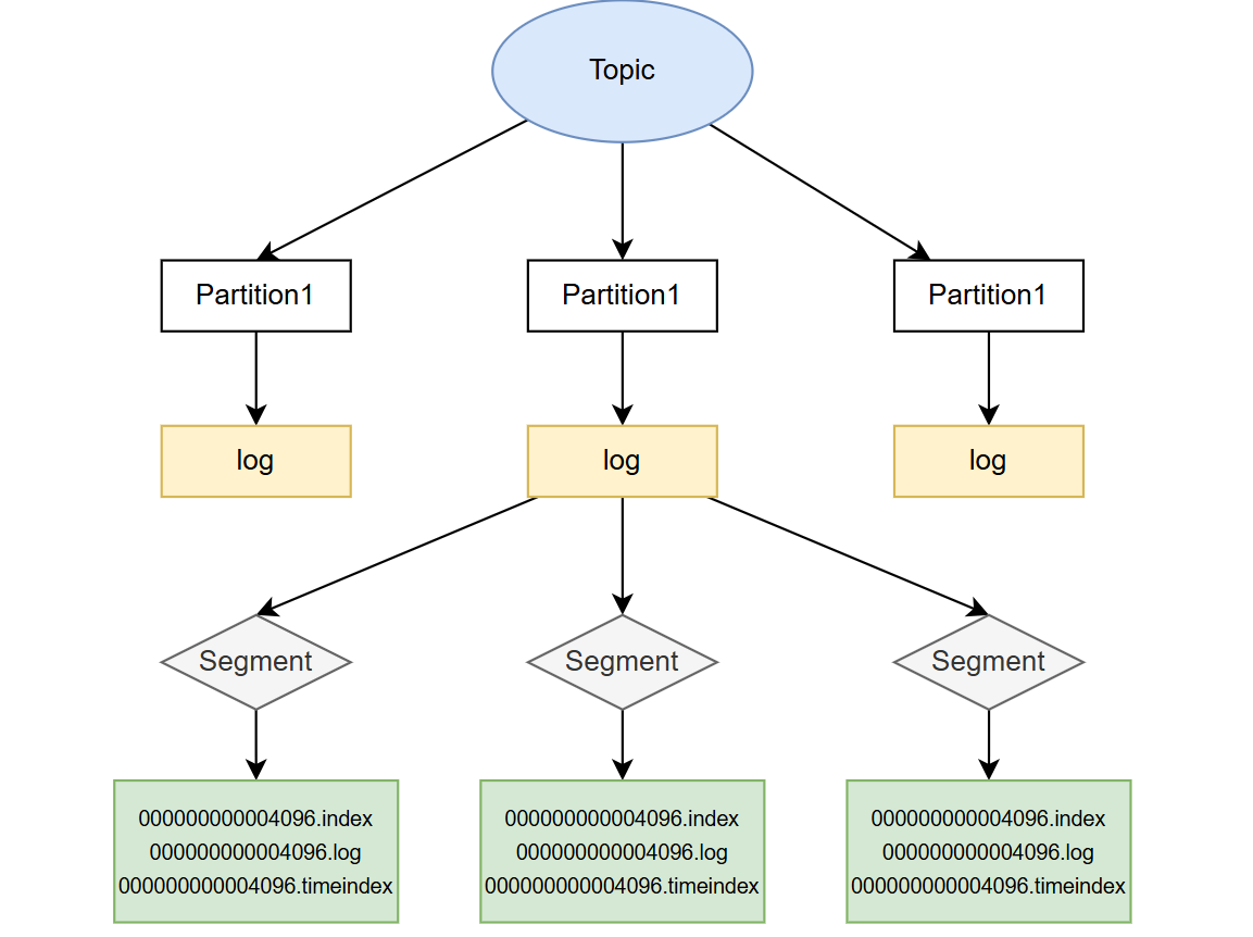 Topic是逻辑上的概念,而partition是物理上的概念,每个partition对应于一个log文件,该log文件中存储的就是Producer生产的数据。Producer生产的数据会被不断追加到该log文件末端,为防止log文件过大导致数据定位效率低下,Kafka采取了分片和索引机制, 将每个partition分为多个segment。