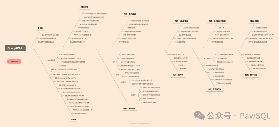 数据操作语句(DML/DQL)的不当写法,往往是正确性、安全性与性能问题的根源。PawSQL从这四个关键角度出发,共设计了99条审核规则,系统覆盖INSERT、SELECT、UPDATE、DELETE等高频操作场景,帮助开发者从编码阶段规避常见陷阱。