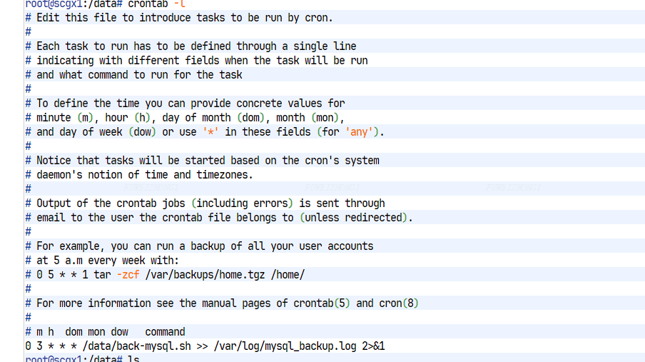 0 3 * * * /data/back-mysql.sh >> /var/log/mysql_backup.log 2>&1每天晚上3点执行