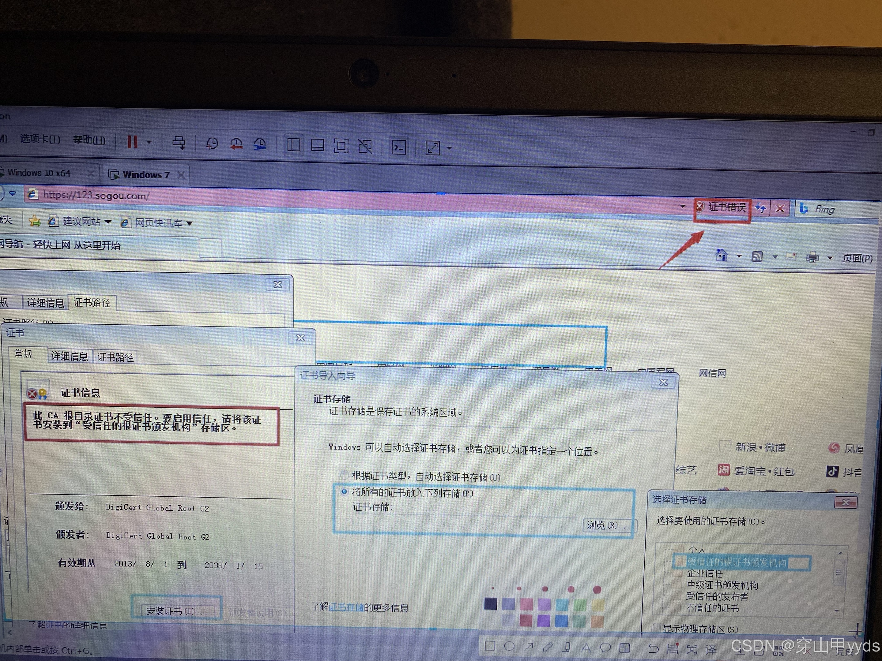 第2种:在浏览器里导出证书,然后安装证书到计算机 可信任的根证书 。
