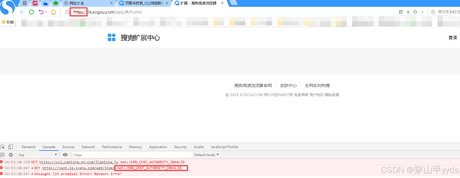 现象:网址栏里,https 红色斜线 .或者F12 ,日志 net::ERR_CERT_AUTHORITY_INVALID