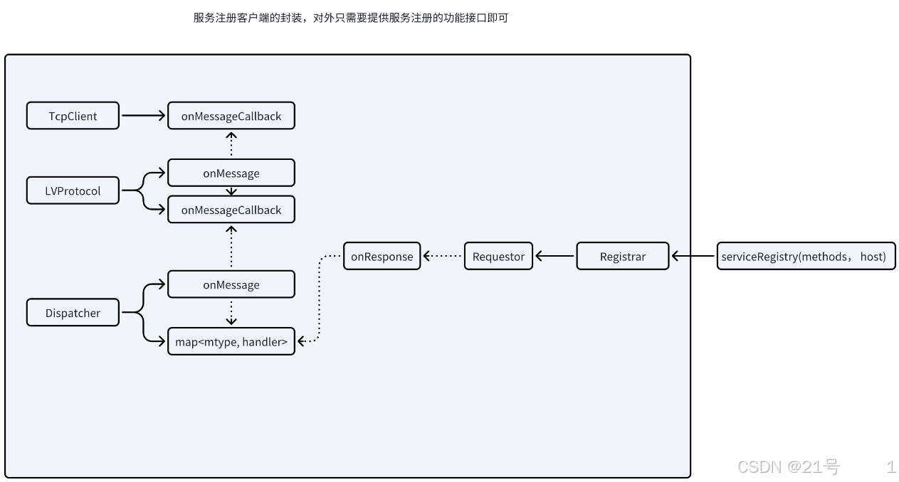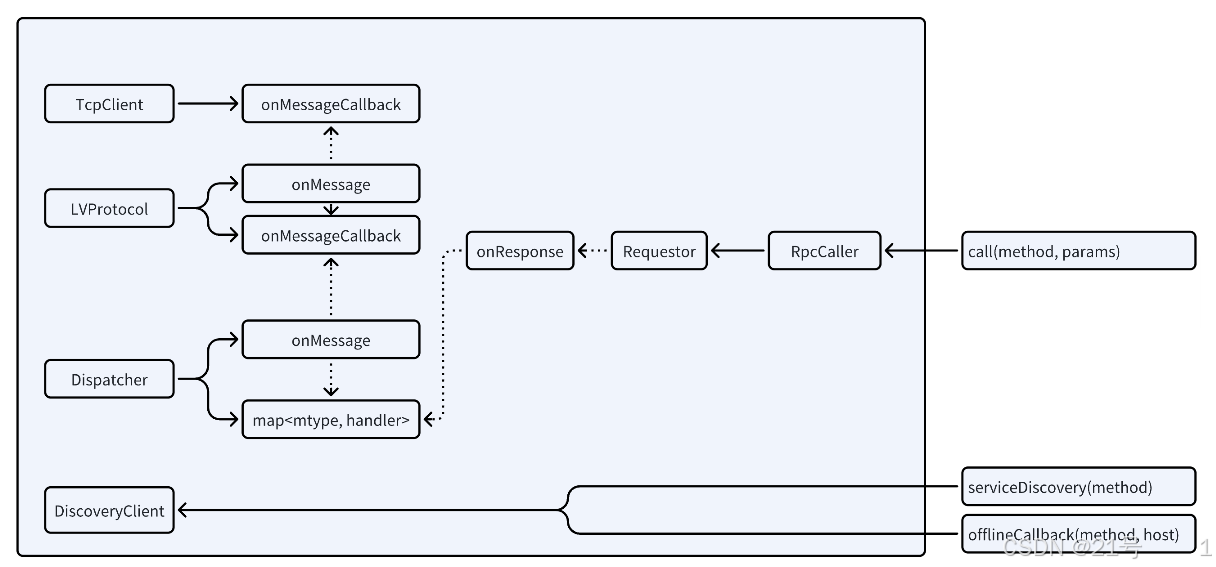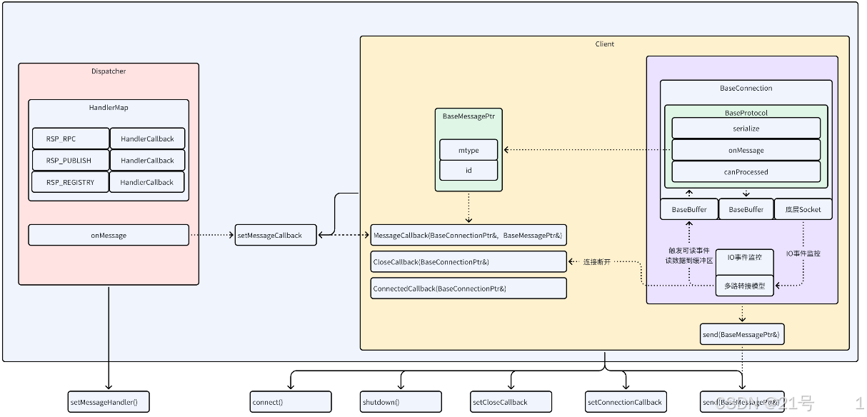 _dispatcher(调度器)注册回调函数,用于处理某种响应消息(MType::RSP_SERVICE类型) - 当响应到达时,调度器会调用我们注册的回调函数,最终需要执行