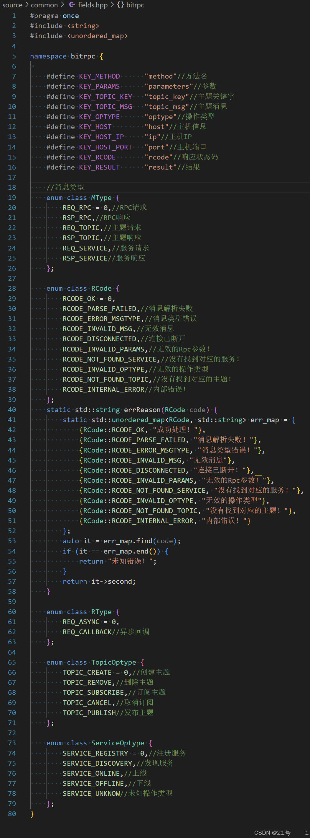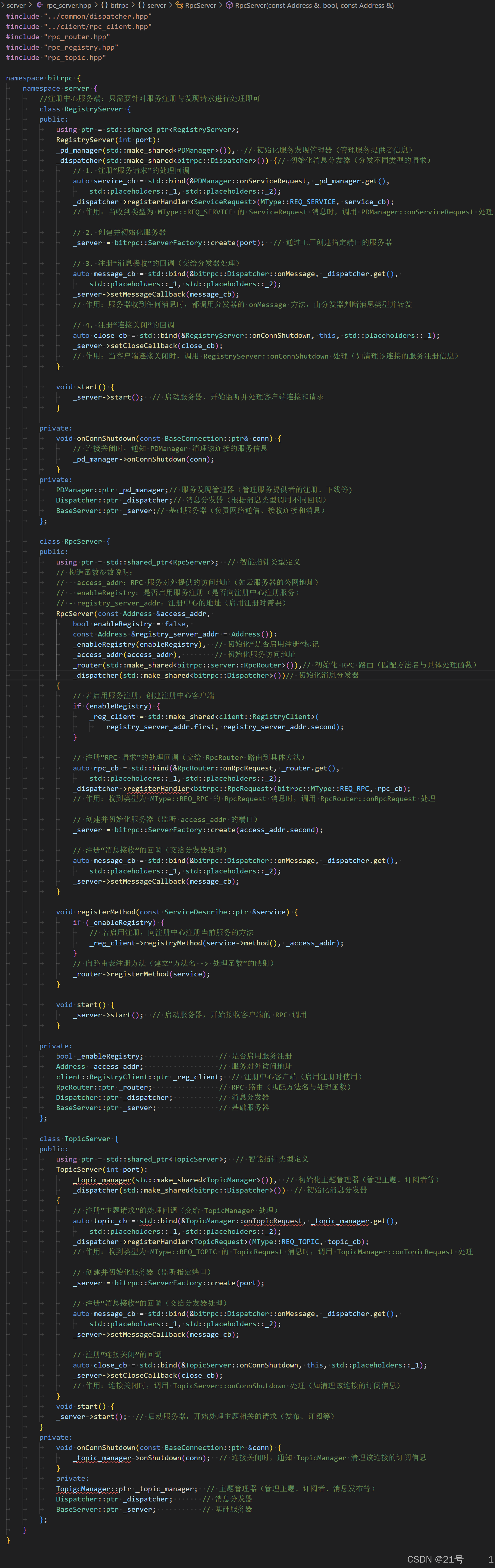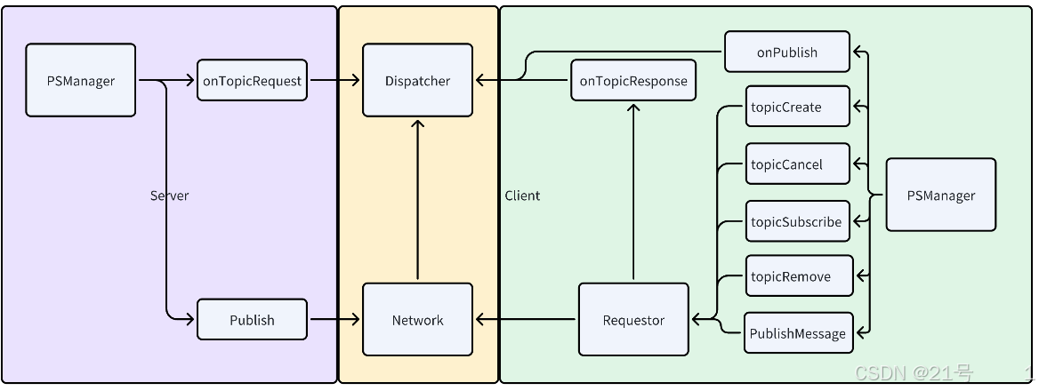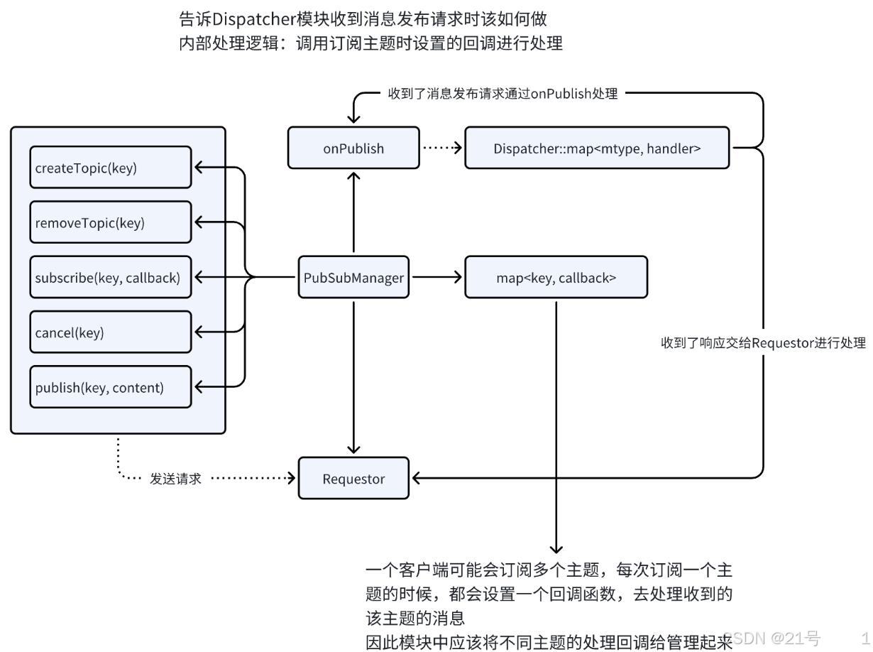 _topics:std::unordered_map<std::string, Topic::ptr>(主题名 → 主题对象)_subscribers:std::unordered_map<BaseConnection::ptr, Subscriber::ptr>(连接 → 订阅者对象)