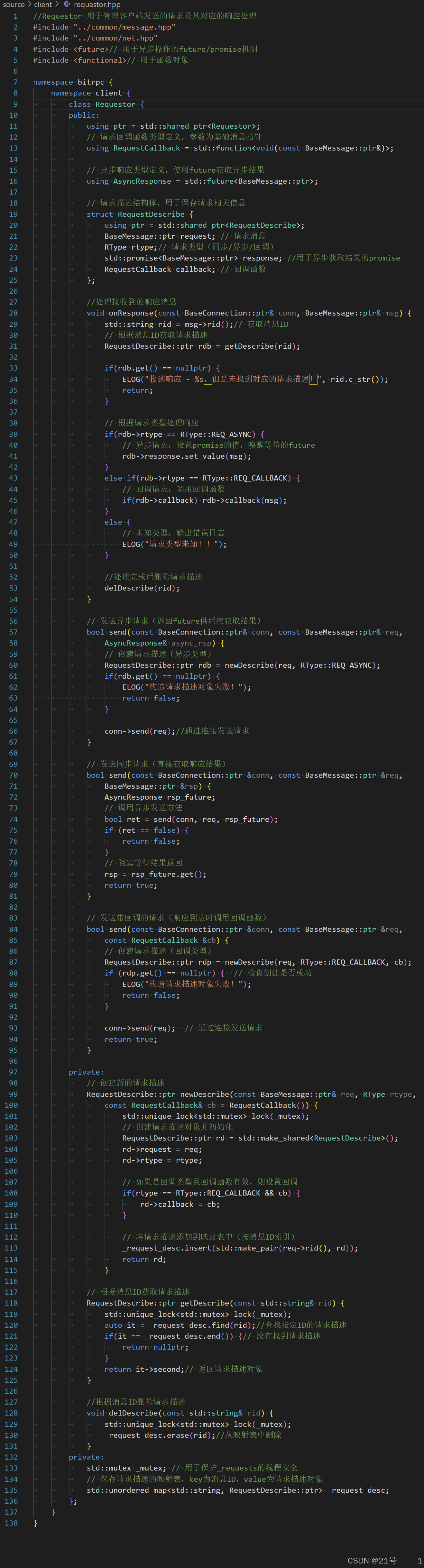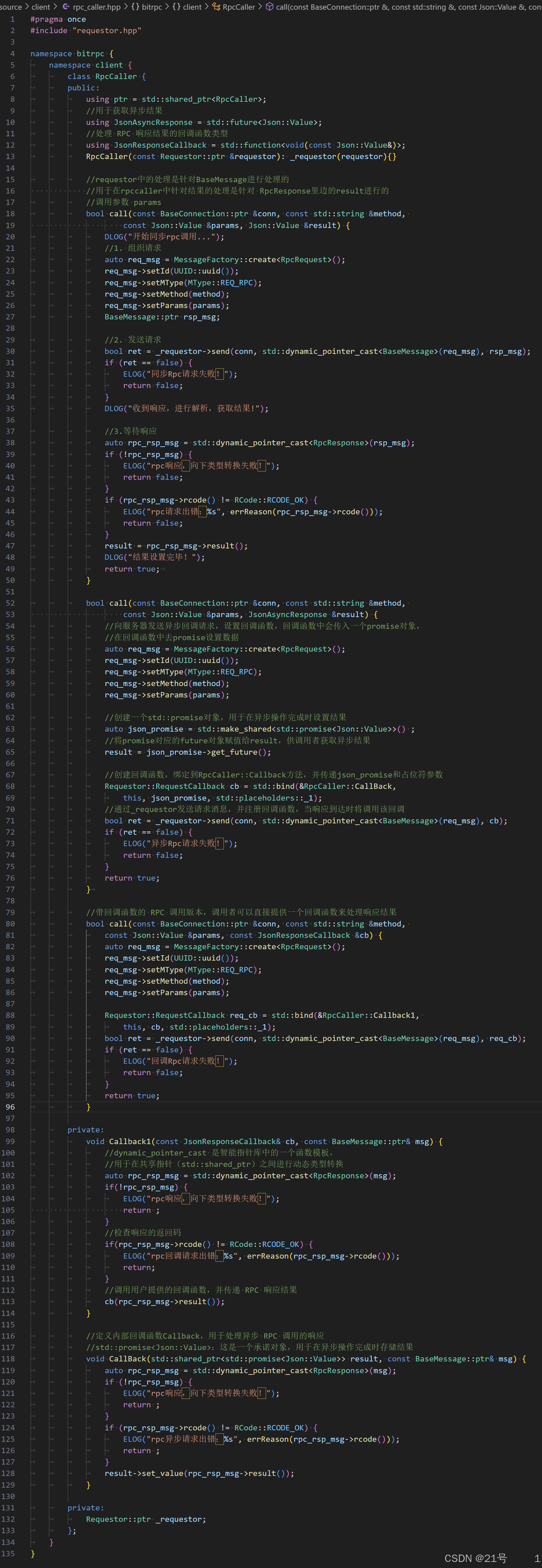 auto rsp_cb = [requestor = _requestor.get()]( // 捕获Requestor对象的原始指针BaseConnection::ptr& conn, // 第1个参数:严格匹配调度器要求(非const)std::shared_ptr<BaseMessage> msg // 第2个参数:严格匹配调度器要求(shared_ptr)
