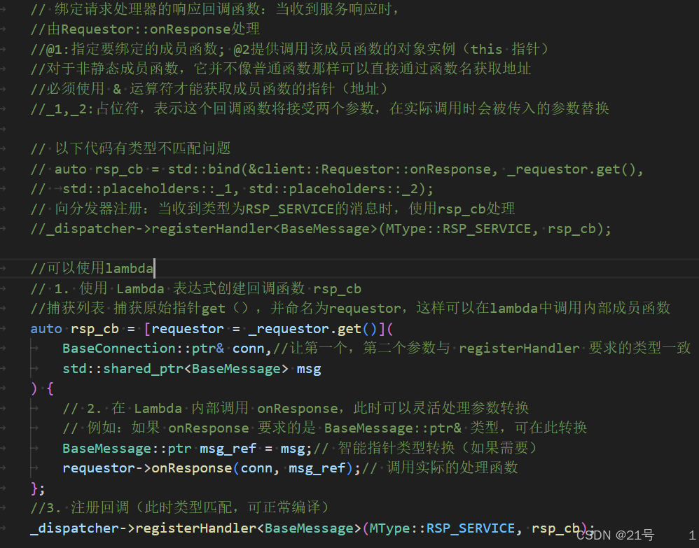 registerHandler的要求,避免std::bind的复杂类型推导问题 - 显式类型转换:在 Lambda 内部可以清晰地处理