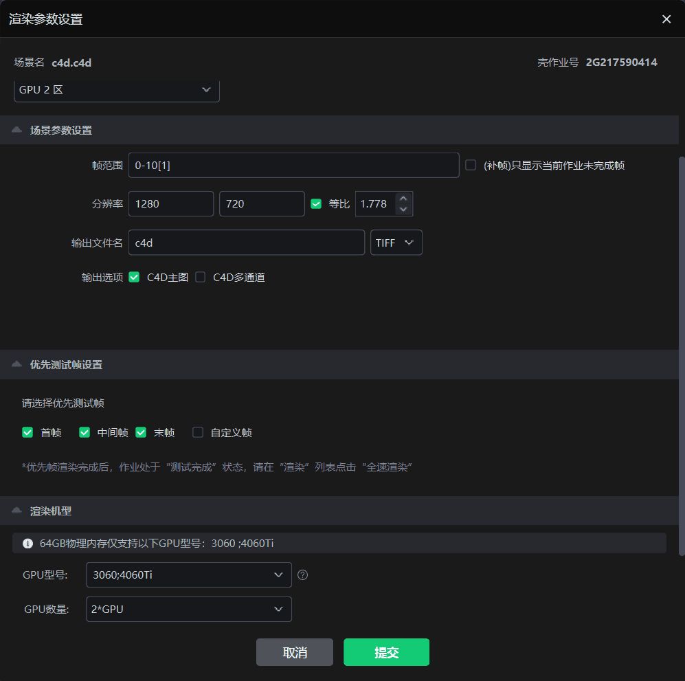 选择与步骤一相同的【目标克隆平台】(如:GPU2区)-设置【优先帧设置】-最后【提交】。