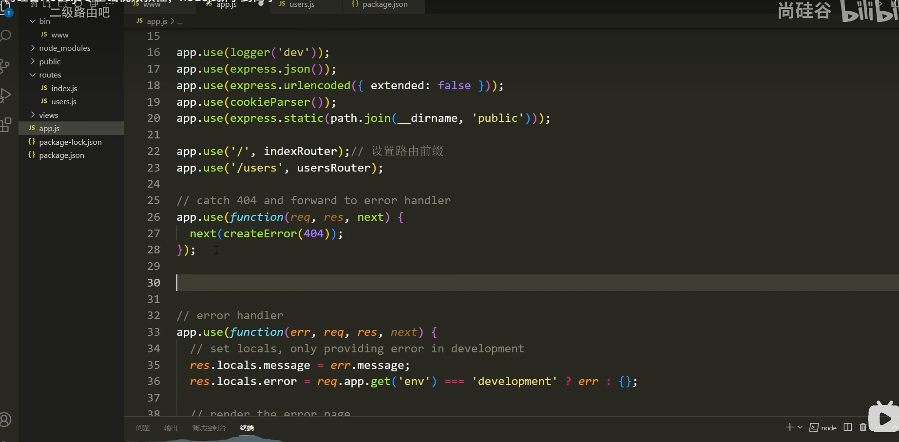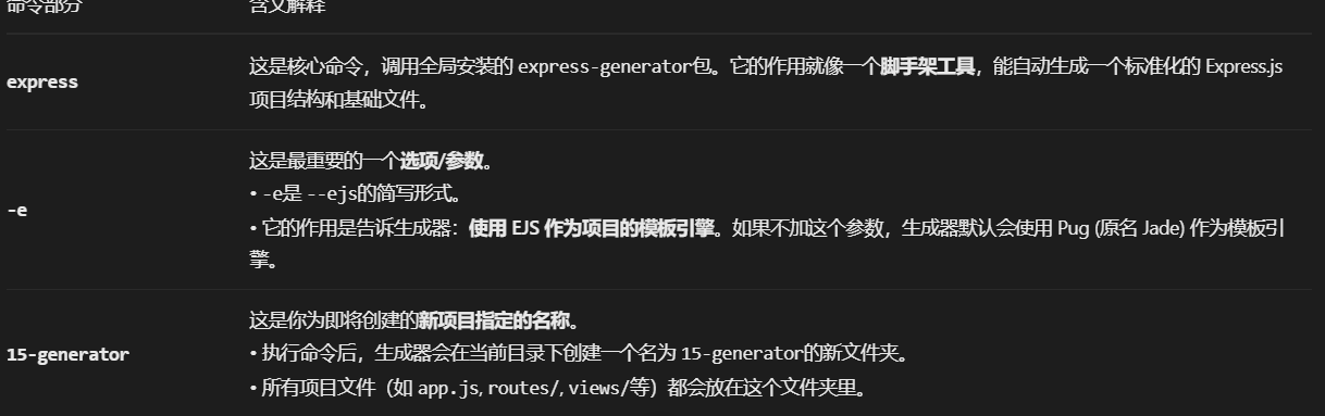 一.什么是express-generator二.如何安装脚手架1.安装生成器包2.Express 应用生成器 来创建 Express.js 项目运行成功后可以看到项目脚手架3.使用npm i安装package.json的依赖4.运行项目5.路由代码模块化6.app.js模块