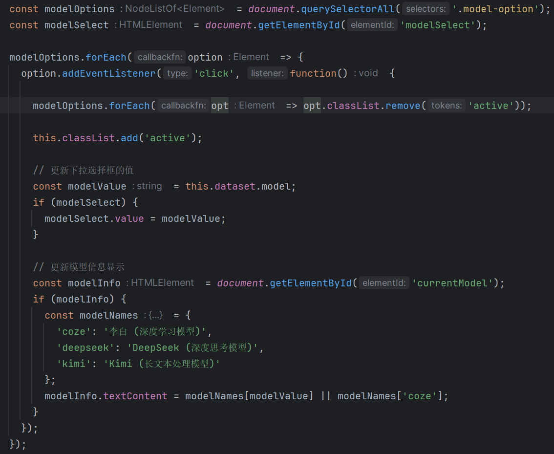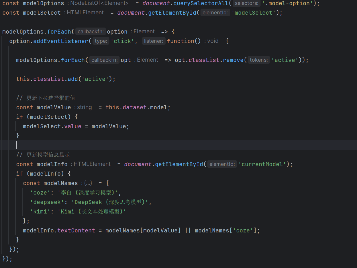 ···用户发送消息时,前端将选择的模型作为参数传递给后端