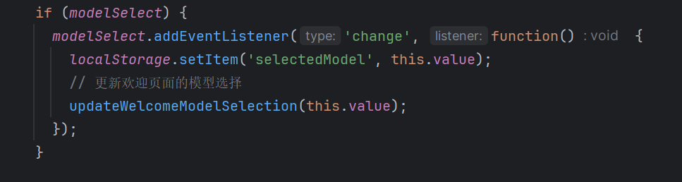 当模型被选择后会在前端页面更新模型提示,并且再之后模型切换的时候也有相应的提示。