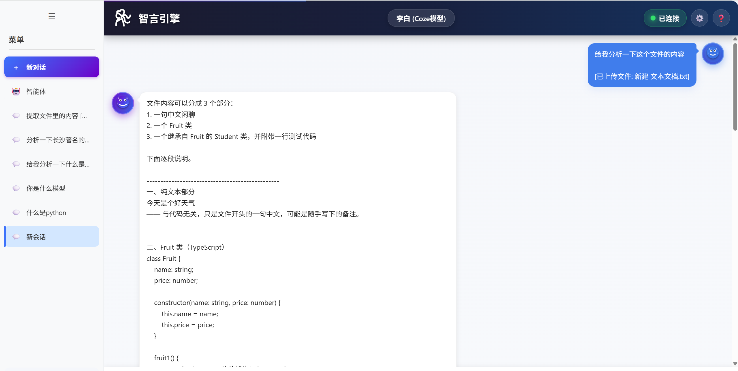 记录都录入sql数据库,创建Coze模型调用api实现与Coze模型的对话。让页面功能不再单调与平