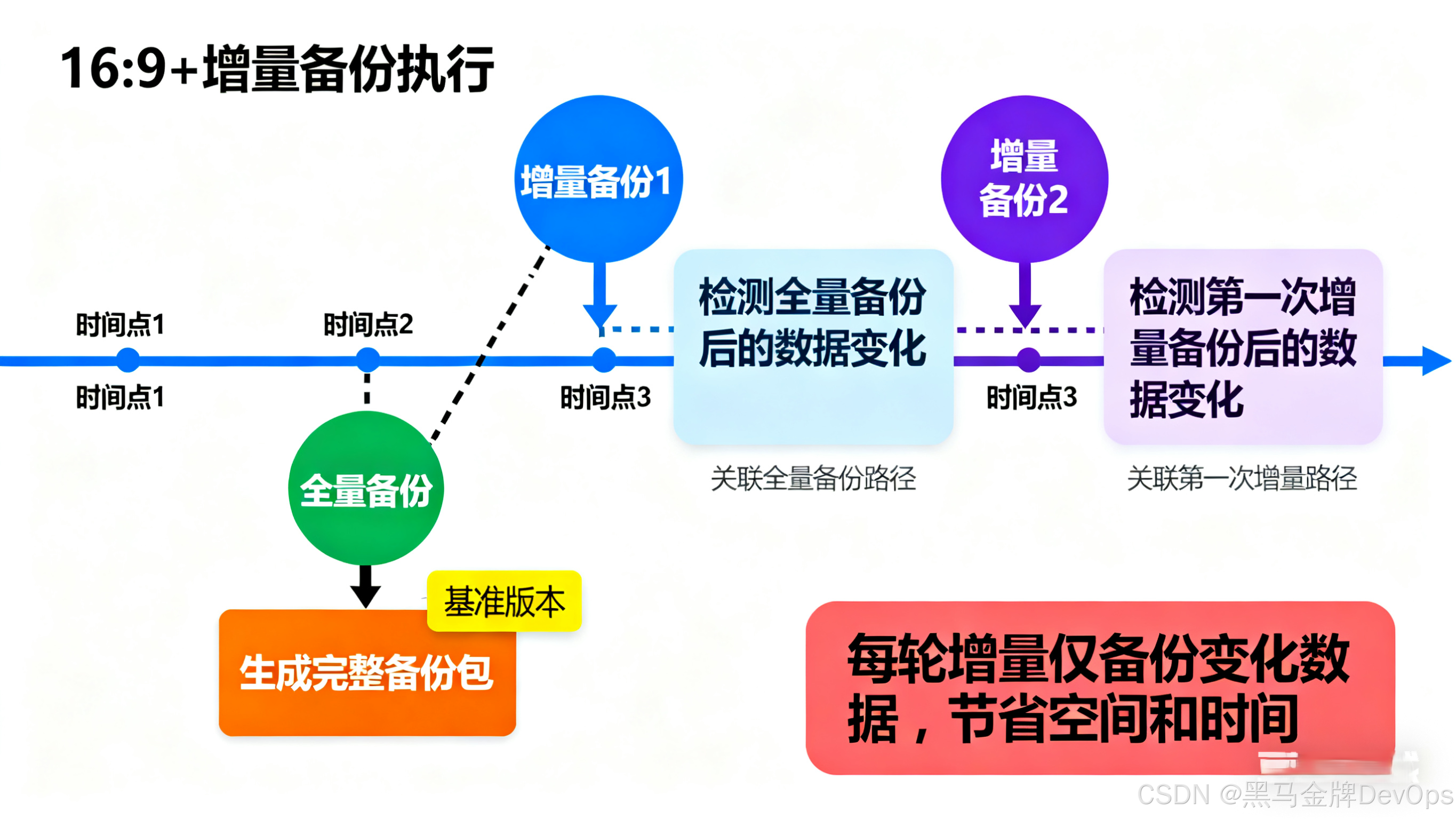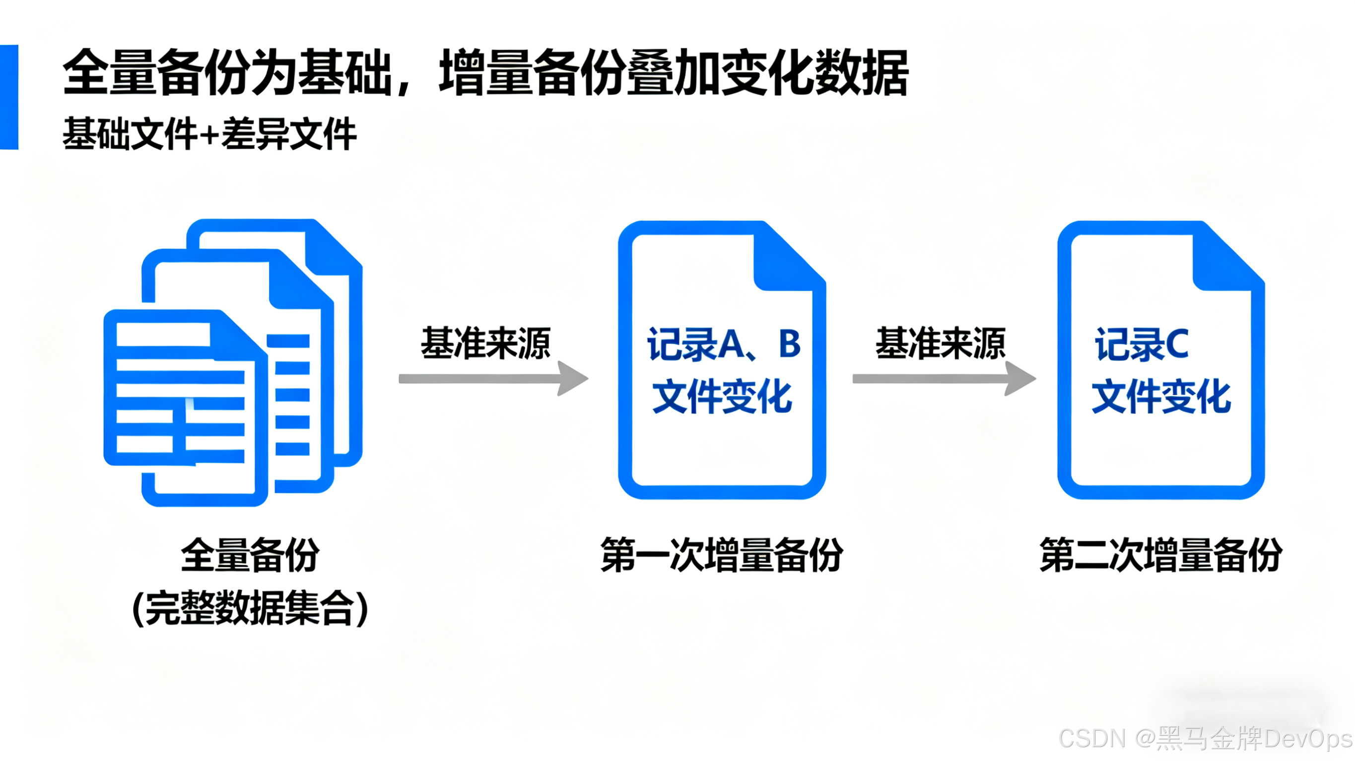 - 全量备份:完整备份整个数据库的所有数据,是增量备份的基础,恢复时需优先使用。