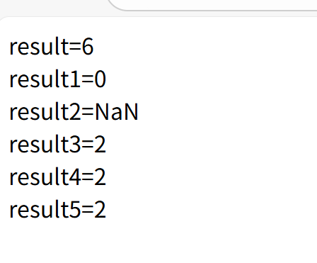 </head><body><script>// && 与 || 非布尔值的情况//对于非布尔值进行与或运算时,会对其转换为布尔值,然后在运算,并且返回原值//与运算//如果第一个值时true,则必然返回第二个值var result=5&&6;document.write("result="+result+"<br>");//如果第一个值时false,则之间返回第一个值var result1=0&&2;document.write("result1="+result1+"<br>");var result2=NaN&&0;document.write("result2="+result2+"<br>");// 或运算//如果第一个值是true,直接返回第一个值var result3=2||1;document.write("result3="+result3+"<br>");var result4=2||NaN;document.write("result4="+result4+"<br>");//如果第一个值是false,则返回第二个值var result5=0||2;document.write("result5="+result5+"<br>");</script>