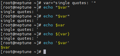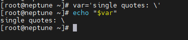[root@localhost opt]# echo '$product' '单引号禁止引用其他变量值,$视为普通字符'