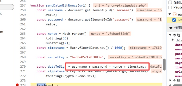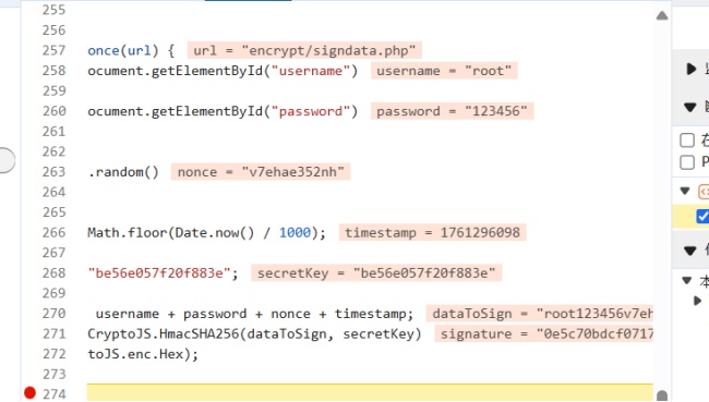 同样的js打断点找加密逻辑,通过HmacSHA256(username+password+nonce+时间戳+secreetkey)加密
