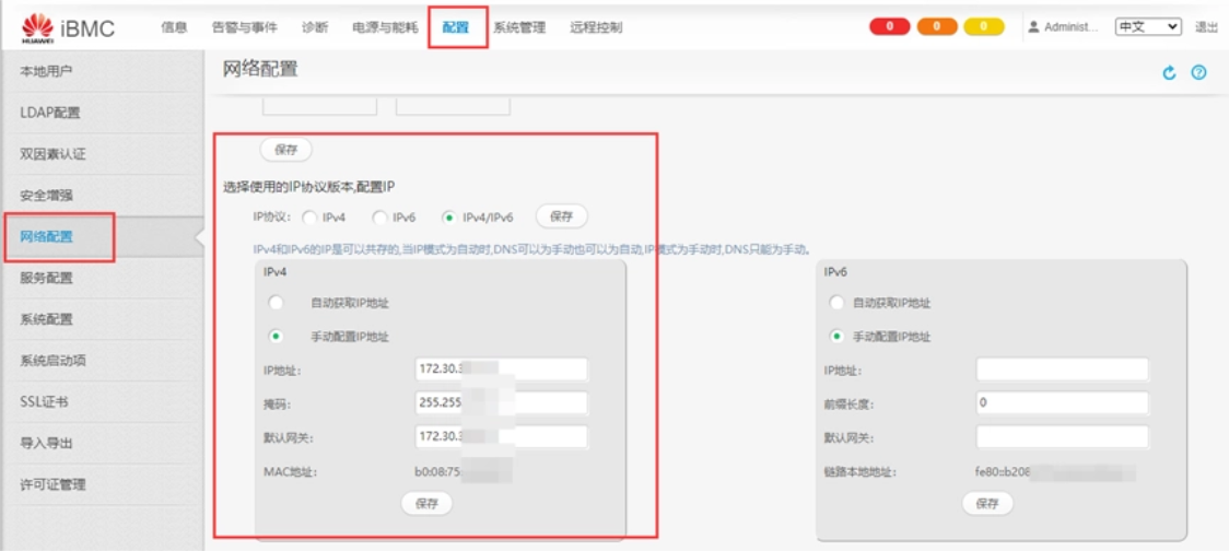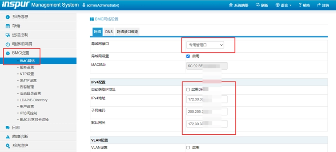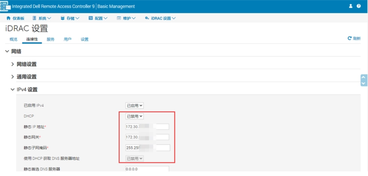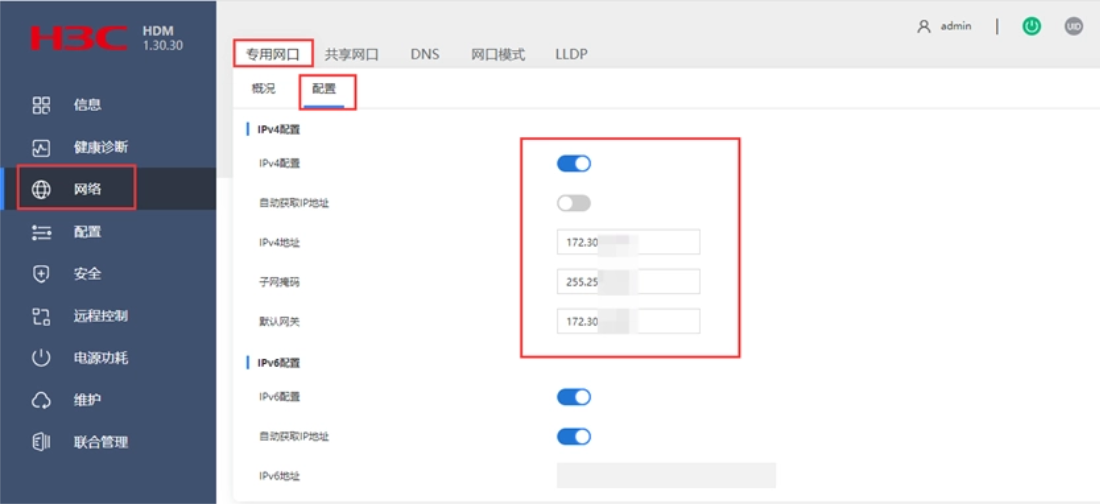 包括关闭DHCP功能,并配置静态IP地址,另外还需启用管理接口IPMI功能,如下图: