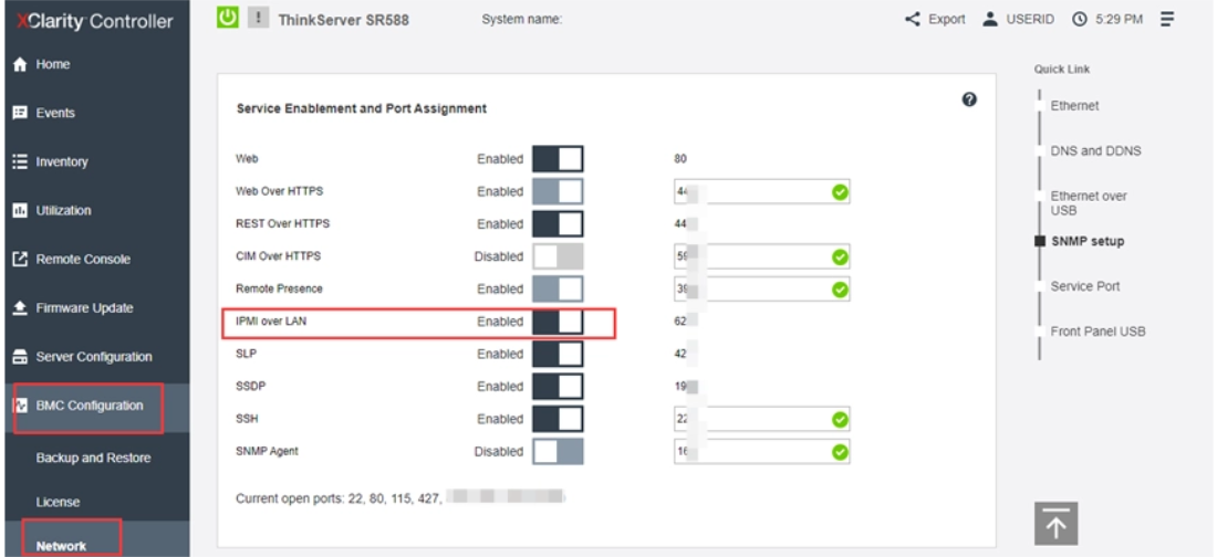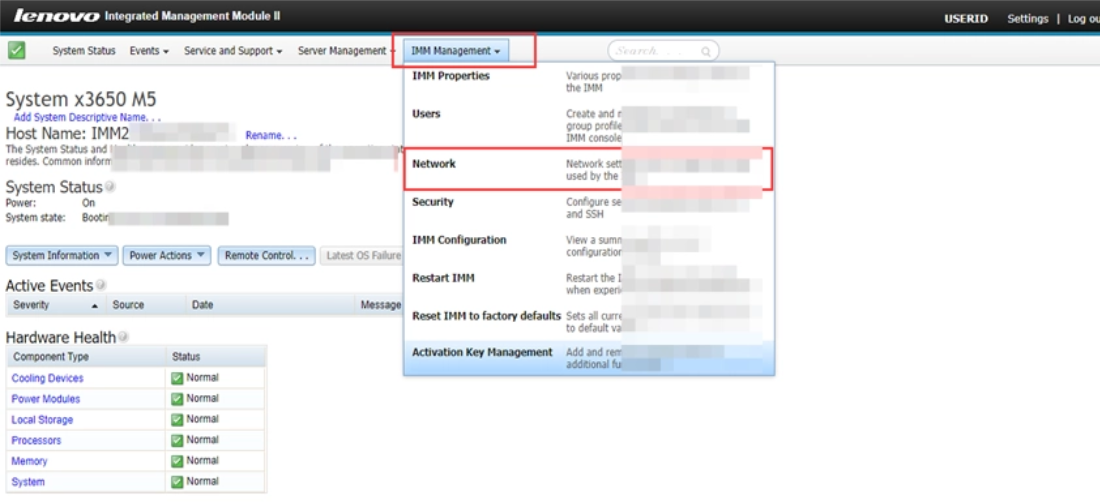默认用户名和密码是 USERID/PASSW0RD,登录之后配置内容如下图: