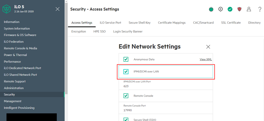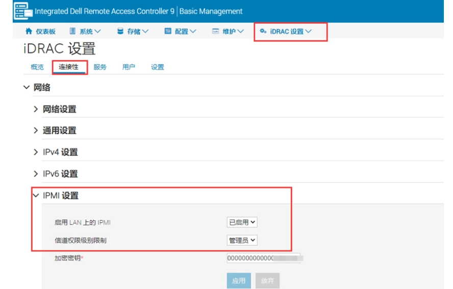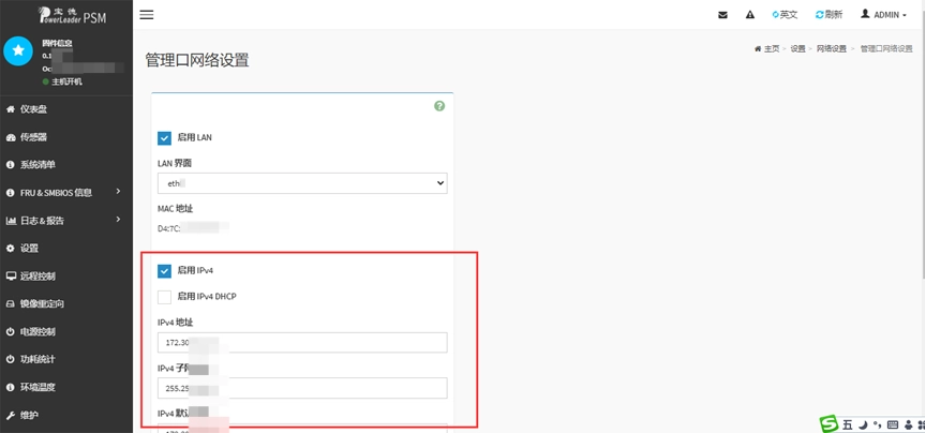 配置完成管理接口IP后,需要管理接口上启用IPMI功能,如下图: