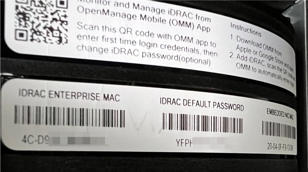 默认管理界面登录的用户名和密码为:root/calvin 一般第一次登录时,系统会提示修改默认密码,这里可以根据实际需求修改,当然也可以忽略提示,继续使用默认密码。如果是使用DHCP方式分配地址的情况,则用户名为root,密码则是服务器标签上的默认密码条信息,如下图: