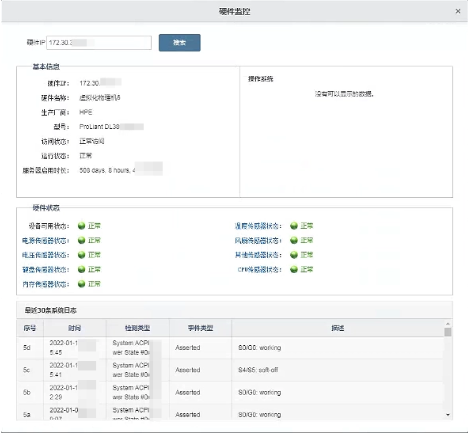 参数测试成功后,就可以确认添加完成。从服务器硬件管理界面,就可以查看到服务器硬件指标的总览内容,如下图: