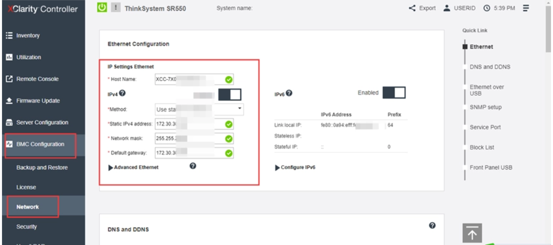 默认用户名和密码是 USERID/PASSW0RD,登录之后包括关闭DHCP功能,并配置静态IP地址配置内容如下图: