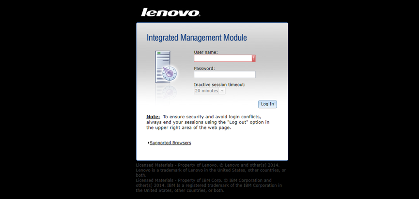 IBM(联想)服务器的管理接口标识名称是:IMM,管理接口默认ip同样为192.168.70.125,登录界面如下图: