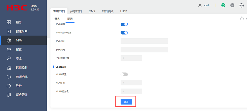 配置后管理IP之后,需要在管理接口上启用IPMI功能,如下图: