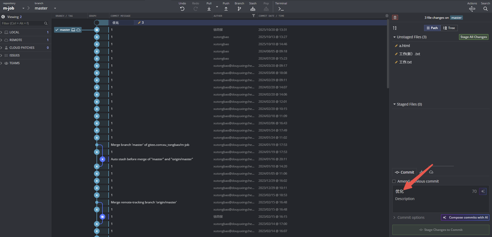 应该是创建一个文件,文件里写好的默认的信息把YourName改一下 git config --global commit.template C:\Users\YourName\.gitmessage.txt