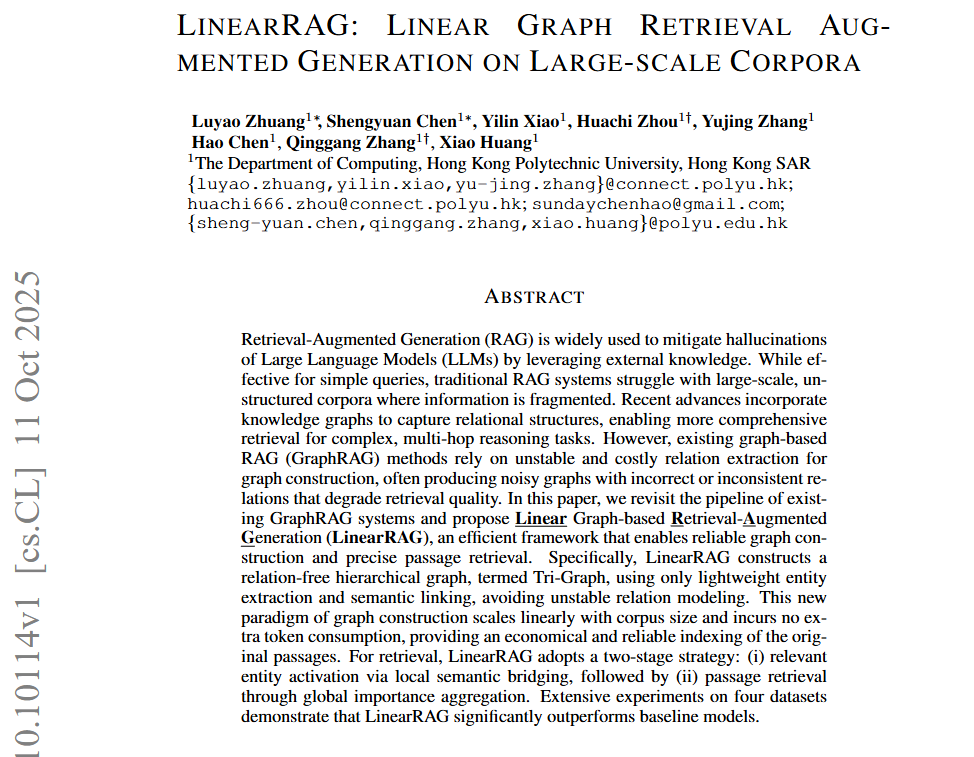 LinearRAG—重新定义GraphRAG:无需关系抽取的线性图构建新范式 -香港理工