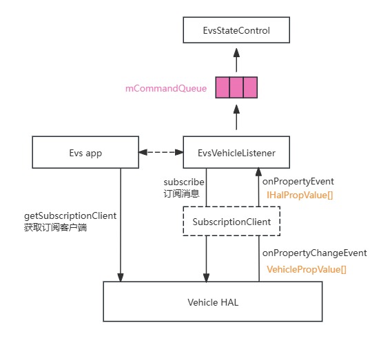- EvsVehicleListener完成内容订阅后就等待事件的到来。当收到事件后将这个事件送到命令缓存队列