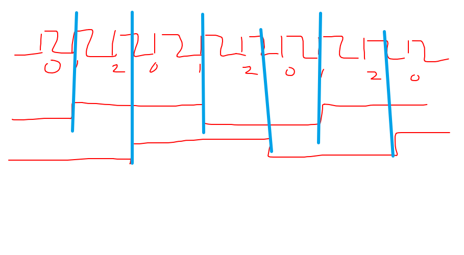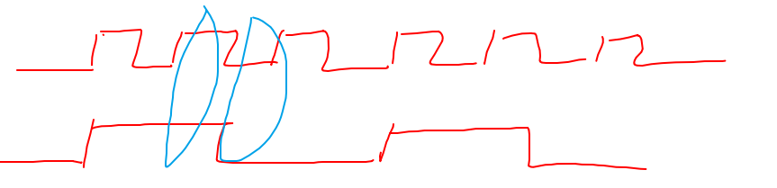 但是会出现如下问题: 在0 的上升沿和2 的下降沿都要跳变。 不符合编码 ???