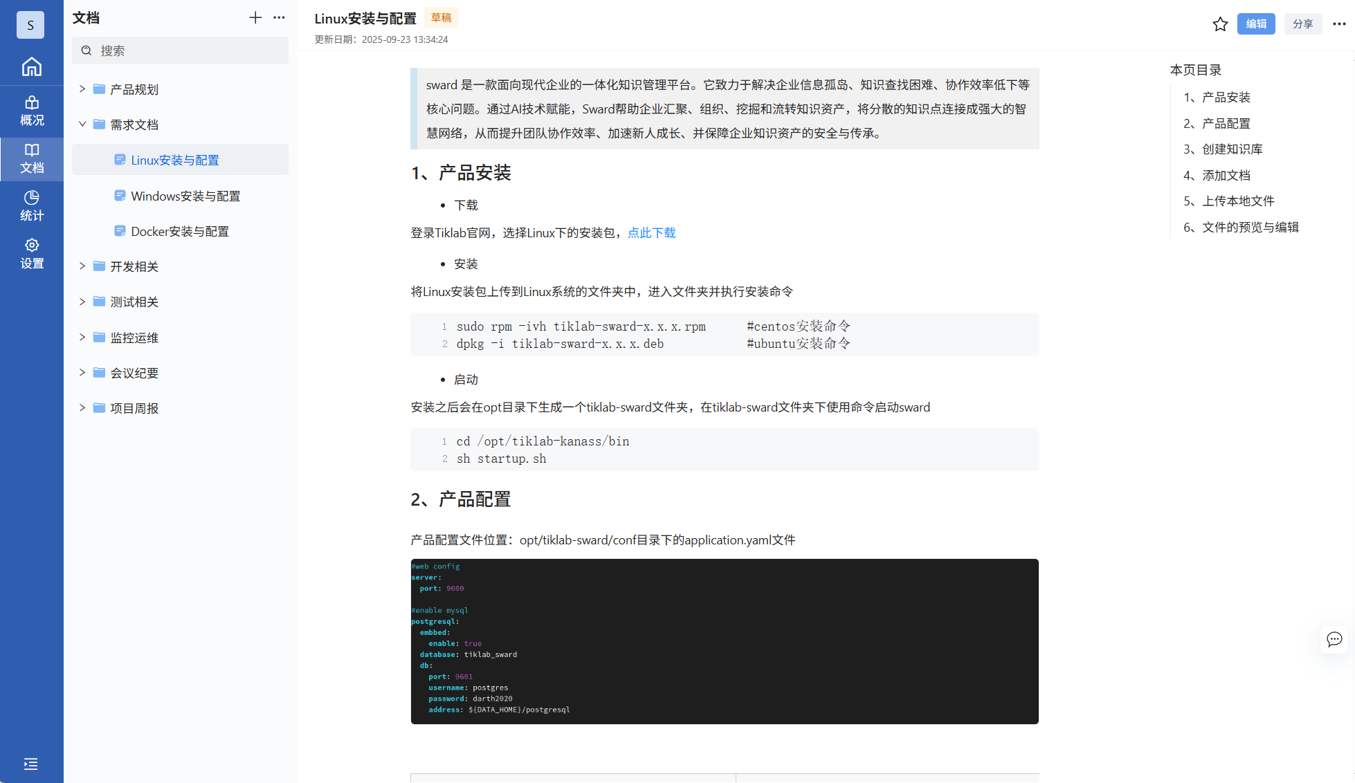 由于sward支持线下部署,所以非常适合对文档有着极高安全要求的企业,且sward开源免费,更适合预算有限但对知识管理有定制化需求的企业。