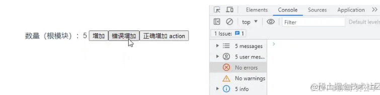 数量(根模块):{{$store.state.count}} <button @click="$store.commit('mutationsAdd',1)">增加</button><button @click="$store.state.count++">错误增加</button>
