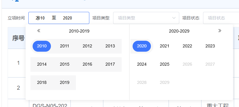 3、实现弹框显示时回显当前选择的开始年和结束年。
