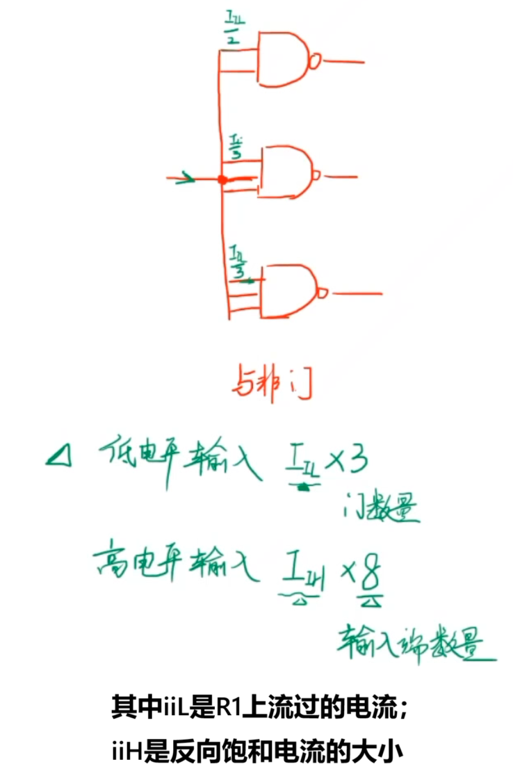 当输入低电平的时候,每一个门都会有R1上VCC-VIL-0.7产生的电流,于是总流出量为N*每条支路的电流。