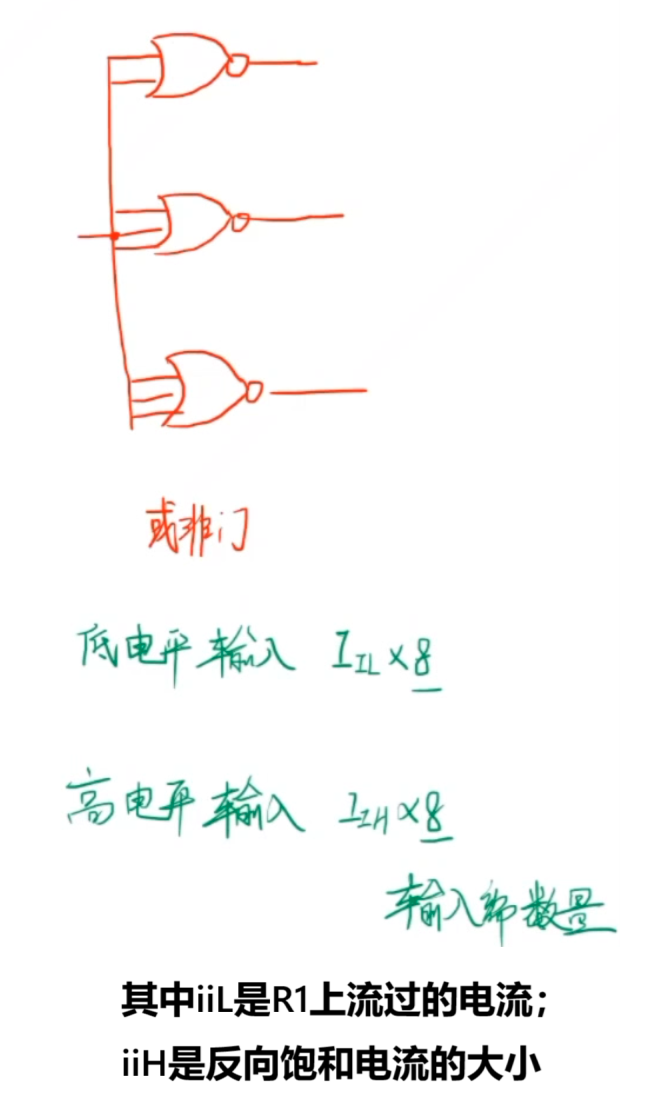 因为在或非门中,每一个输入端口都是独立的,所以计算电流的时候也是独立的。即电路内部总电流是所有输入端的总和,并不会出现与非门输入低电平时候总电流恒定的特点。