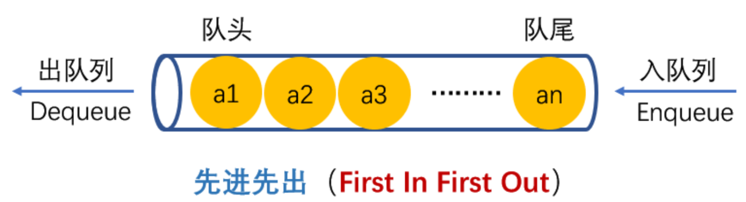 概念:只允许在一端进行插入数据操作,在另一端进行删除数据操作的特殊线性表,队列具有先进先出的性质。