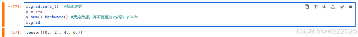 x.grad.zero_() #梯度清零 y = x*x y.sum().backward() #反向传播,其实就是对y求导,y'=2x x.grad