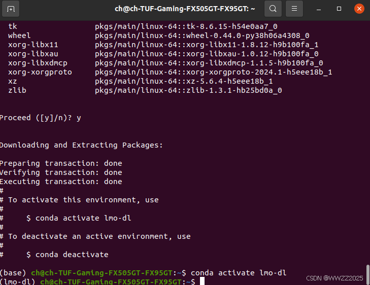 #进入虚拟环境 conda activate lmo-dl#进入虚拟环境base conda activate base#退出虚拟环境 conda deactivate
