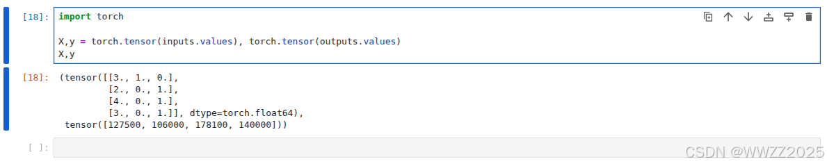 import torchX,y = torch.tensor(inputs.values), torch.tensor(outputs.values) X,y