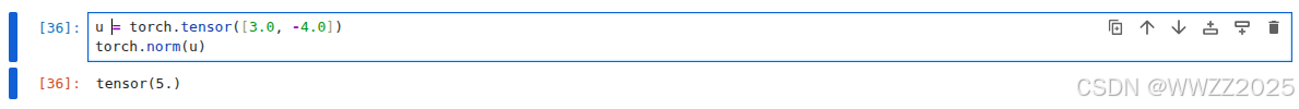 u = torch.tensor([3.0, -4.0]) torch.norm(u)