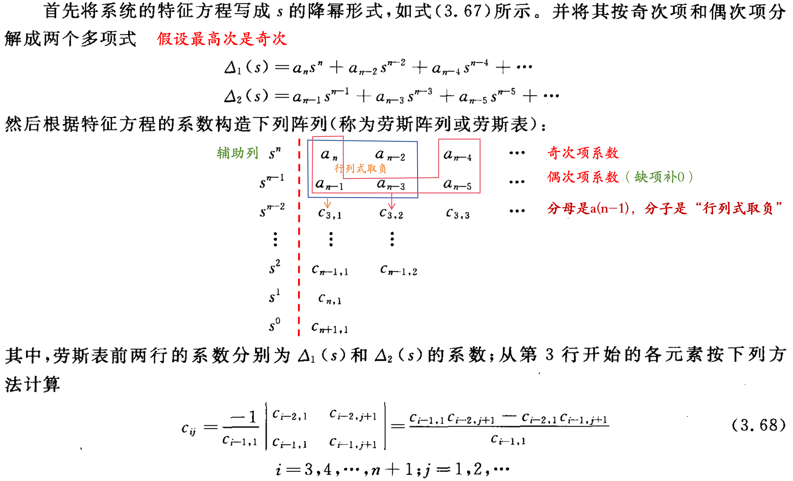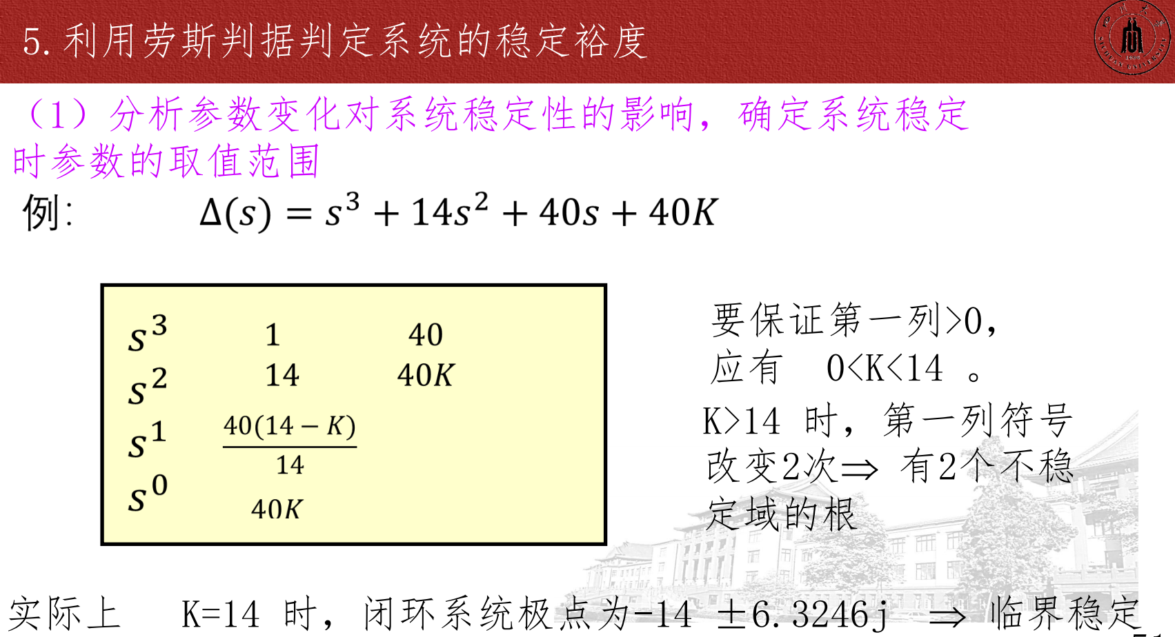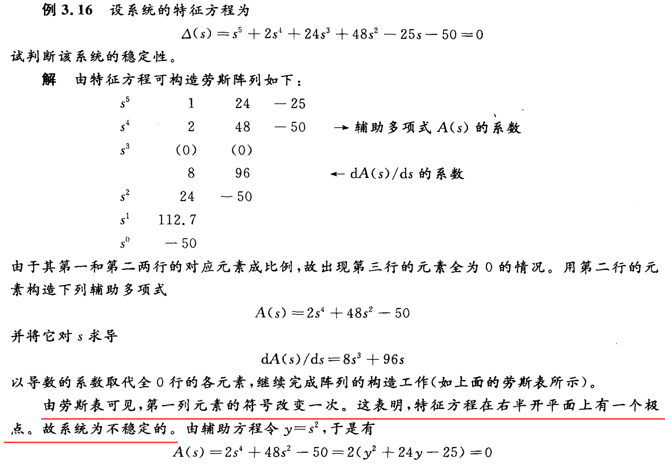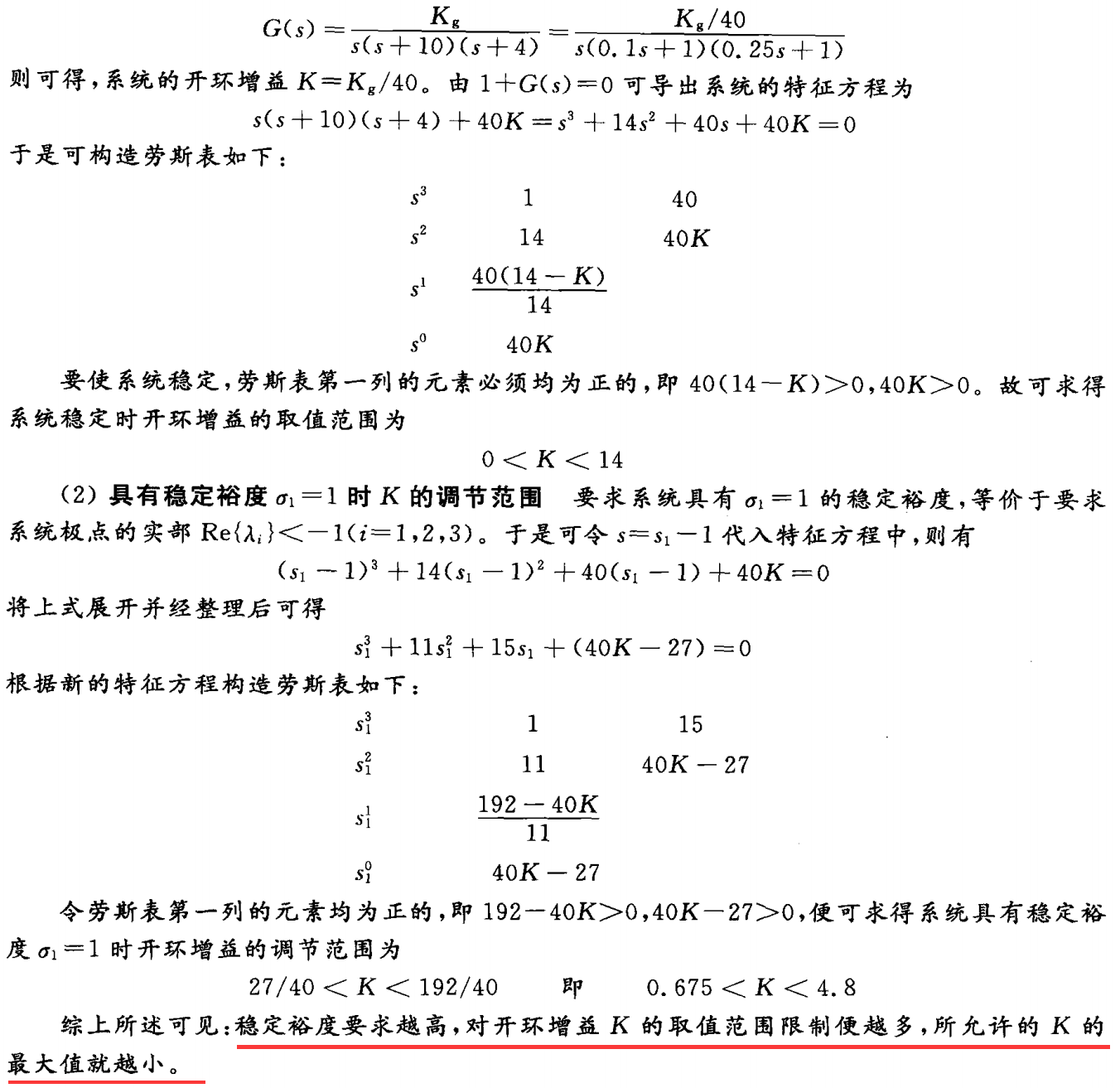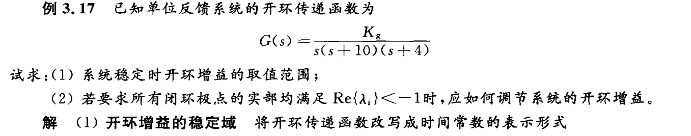 - 前者为系统的绝对稳定性问题(例3.13~例3.16所介绍的就是用劳斯判据来确定系统的绝对稳定性问题);