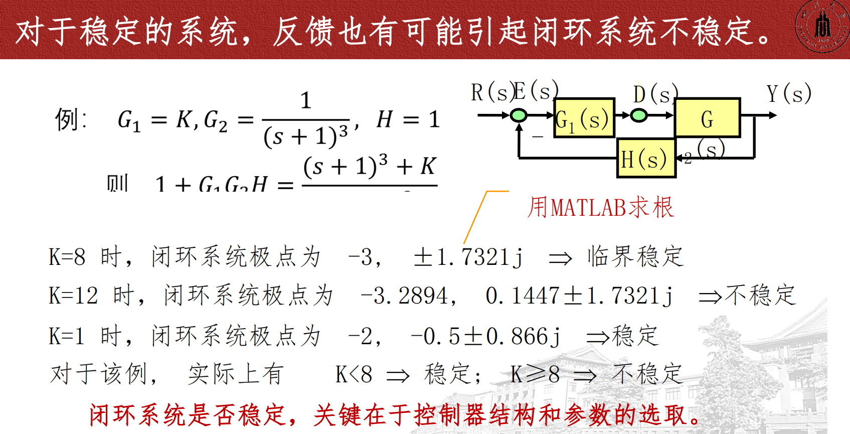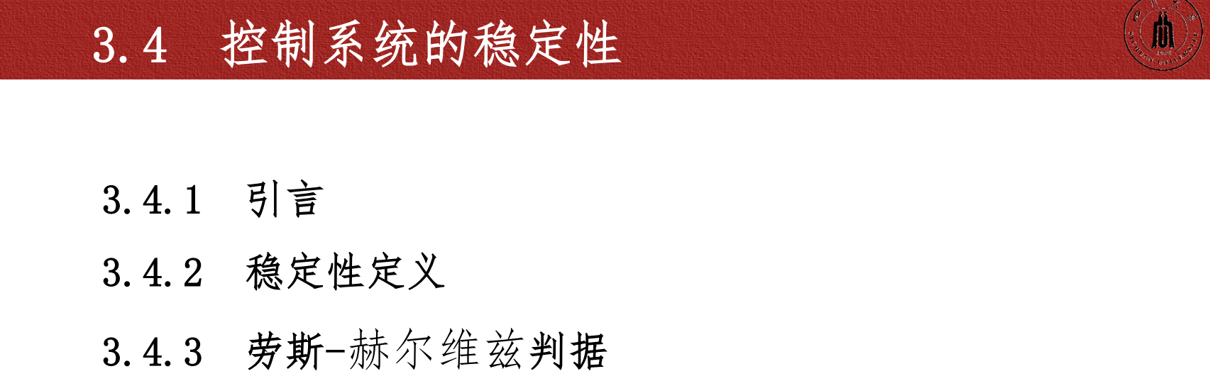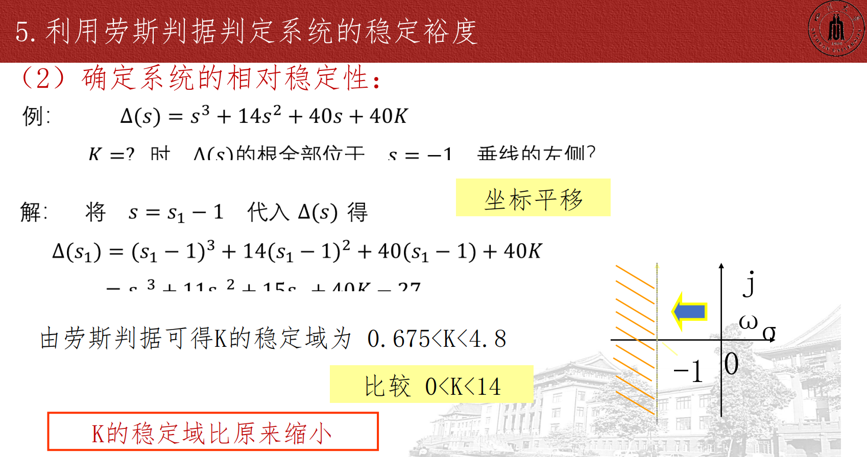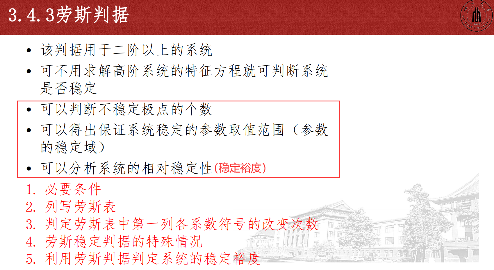 - 前者为系统的绝对稳定性问题(例3.13~例3.16所介绍的就是用劳斯判据来确定系统的绝对稳定性问题);