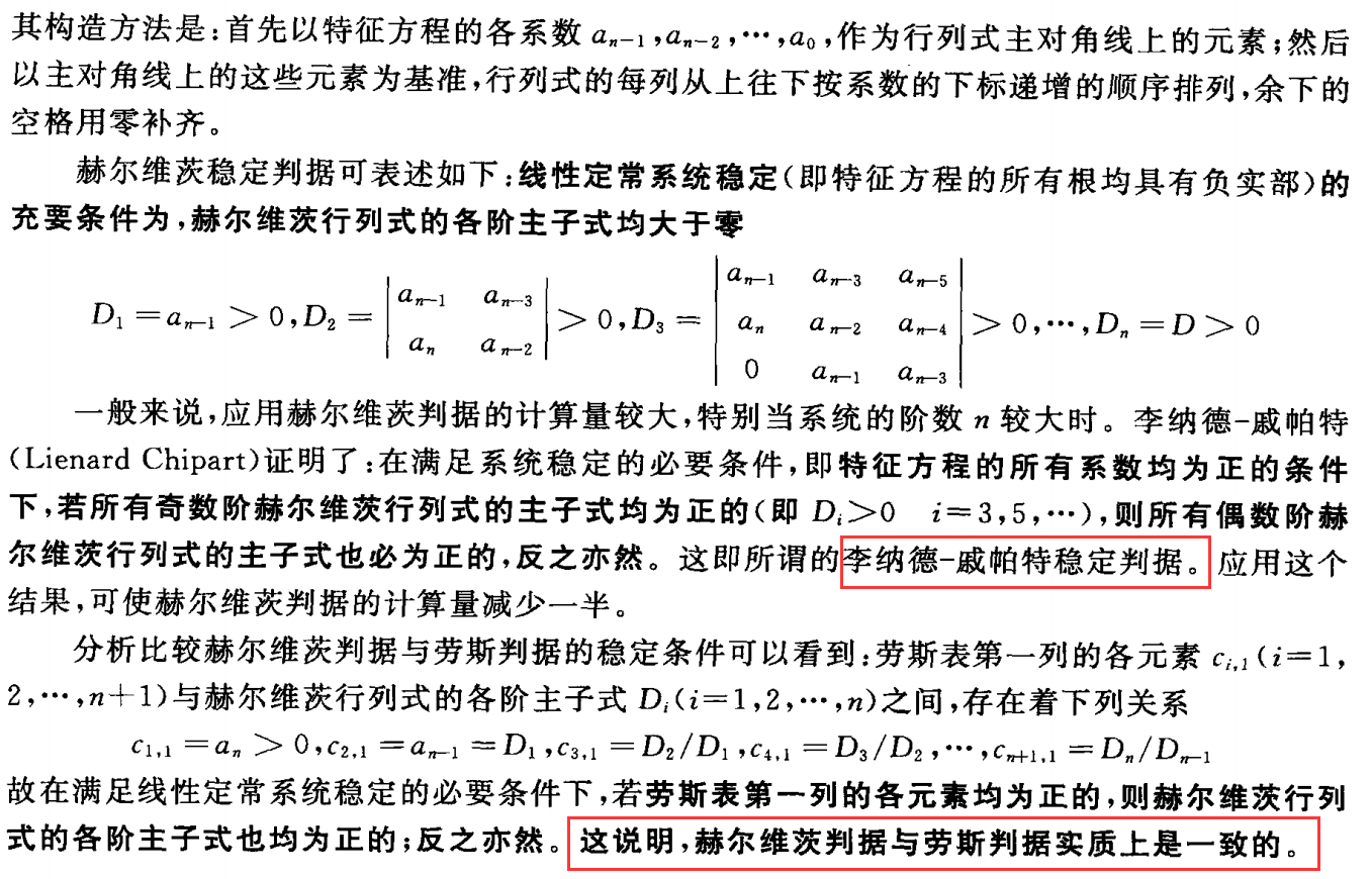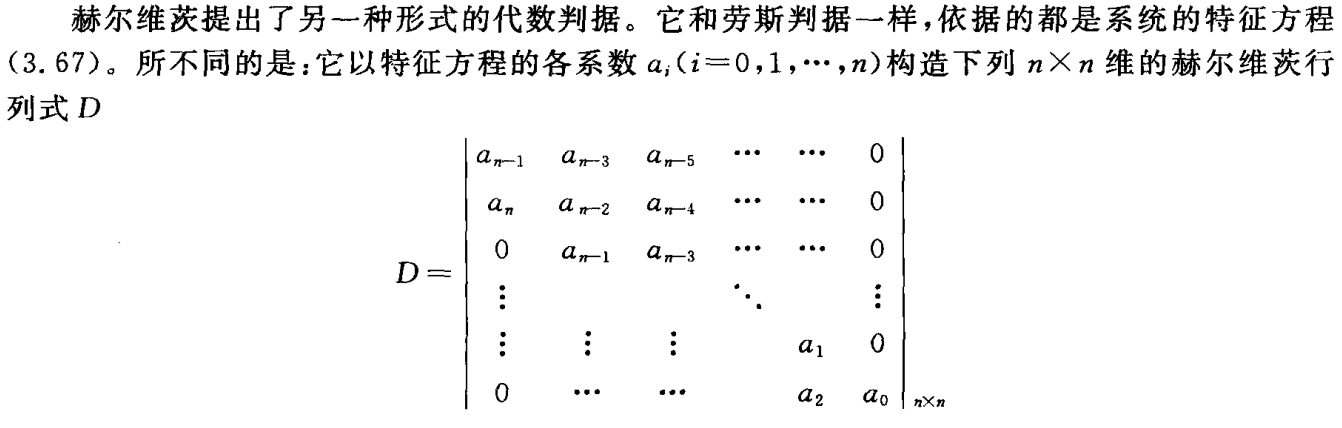 下面以常用的劳斯判据为主,介绍这种判据的特点及其应用,并指出赫尔维茨判据不同于劳斯判据的特殊之处。