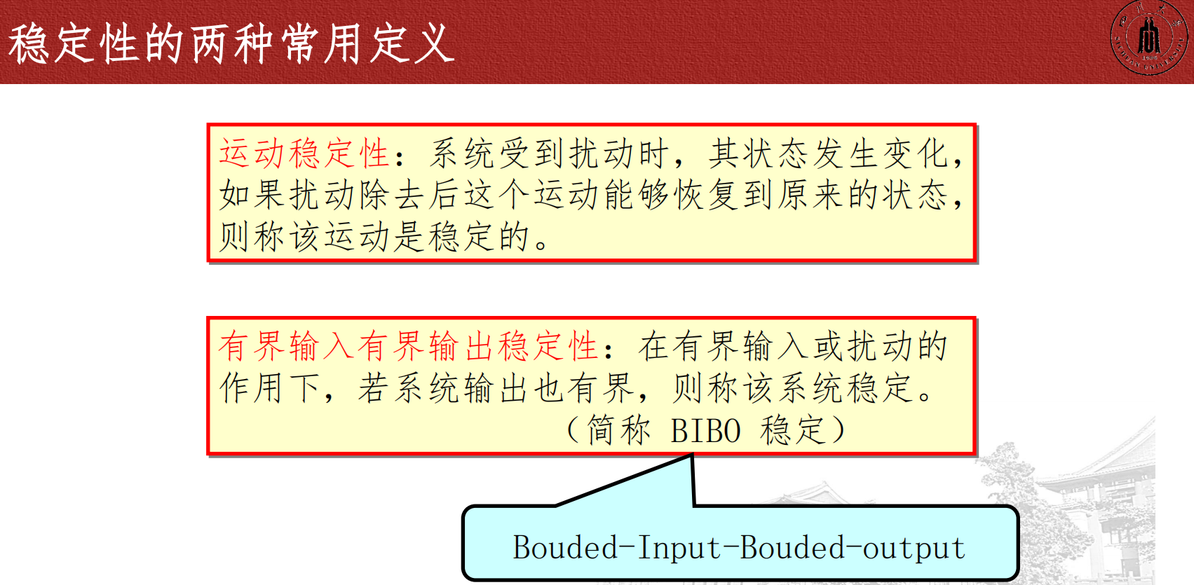 工程上绝大多数系统是属于(2)这种类型的,而且通常是按工程意义下来讨论线性系统的稳定性。故下面讨论线性系统的稳定性时,就不再区分“BIBO稳定”或“内部稳定”,而统一称之为“线性系统稳定”。