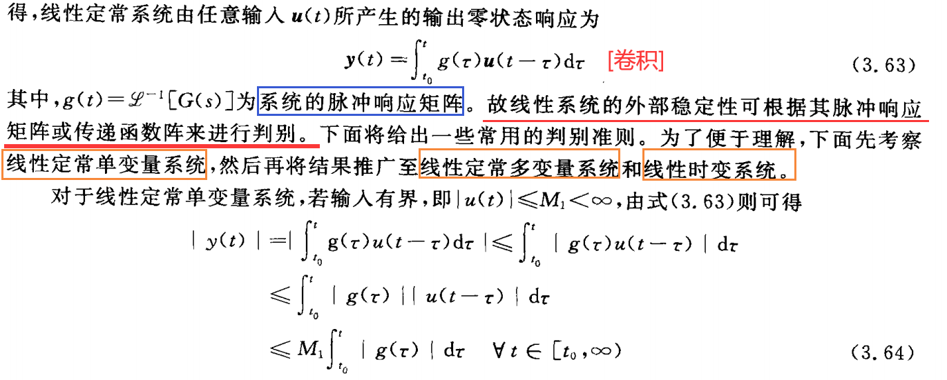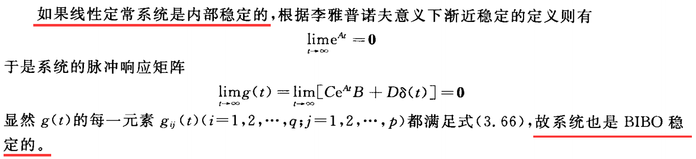 今后,线性定常系统的稳定性除了理论分析需要按李雅普诺夫意义下稳定性来讨论外,通常是按上述内部稳定性的定义来叙述的。