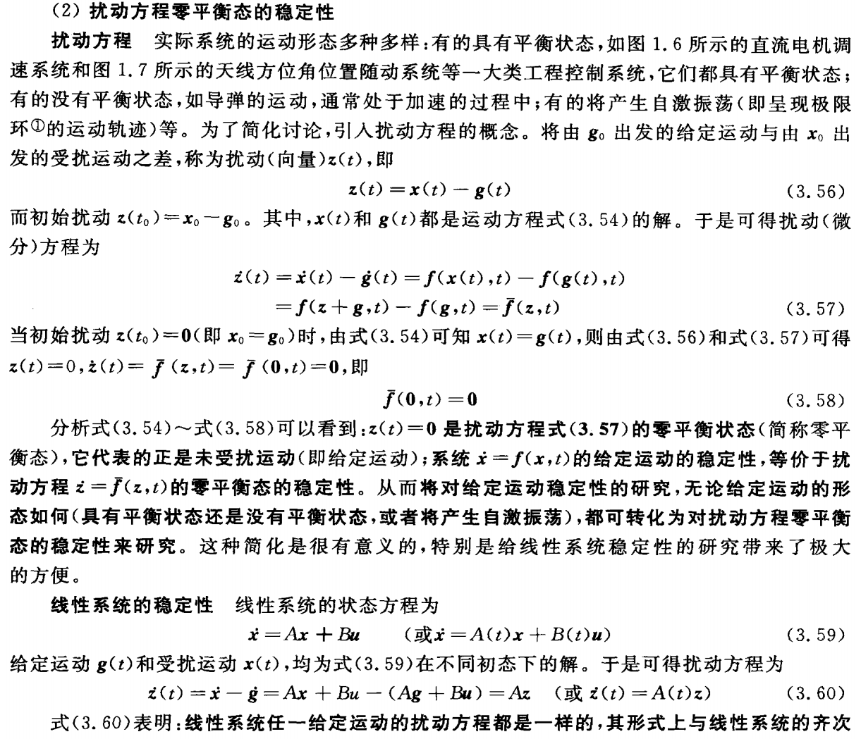 并导出线性系统稳定性与原非线性系统运动稳定性之间的关系,说明线性系统稳定性分析的实际意义;
