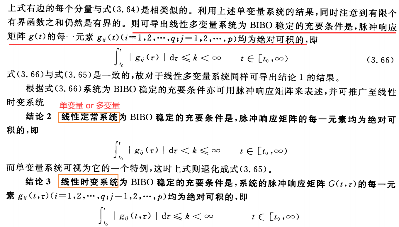 由此可见:为使输出也有界从而系统是BIBO稳定的,其充要条件为