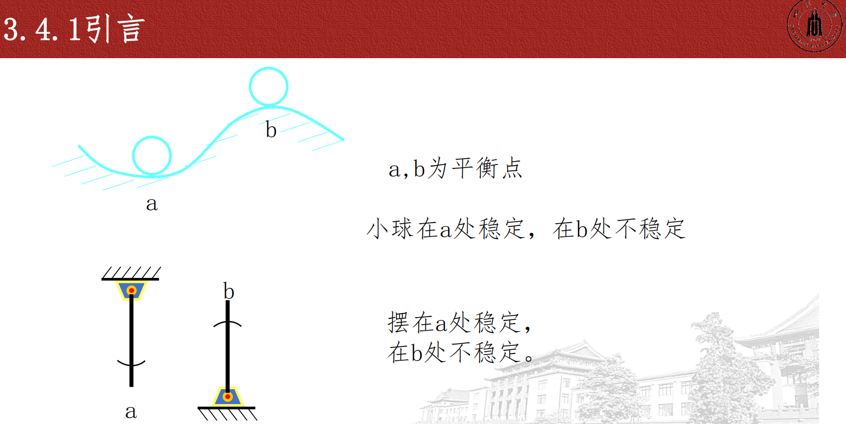 - 而位置b是不稳定的,因为当它受到小扰动后,小球将离开位置b,扰动去除后再也无法恢复到原来的位置。