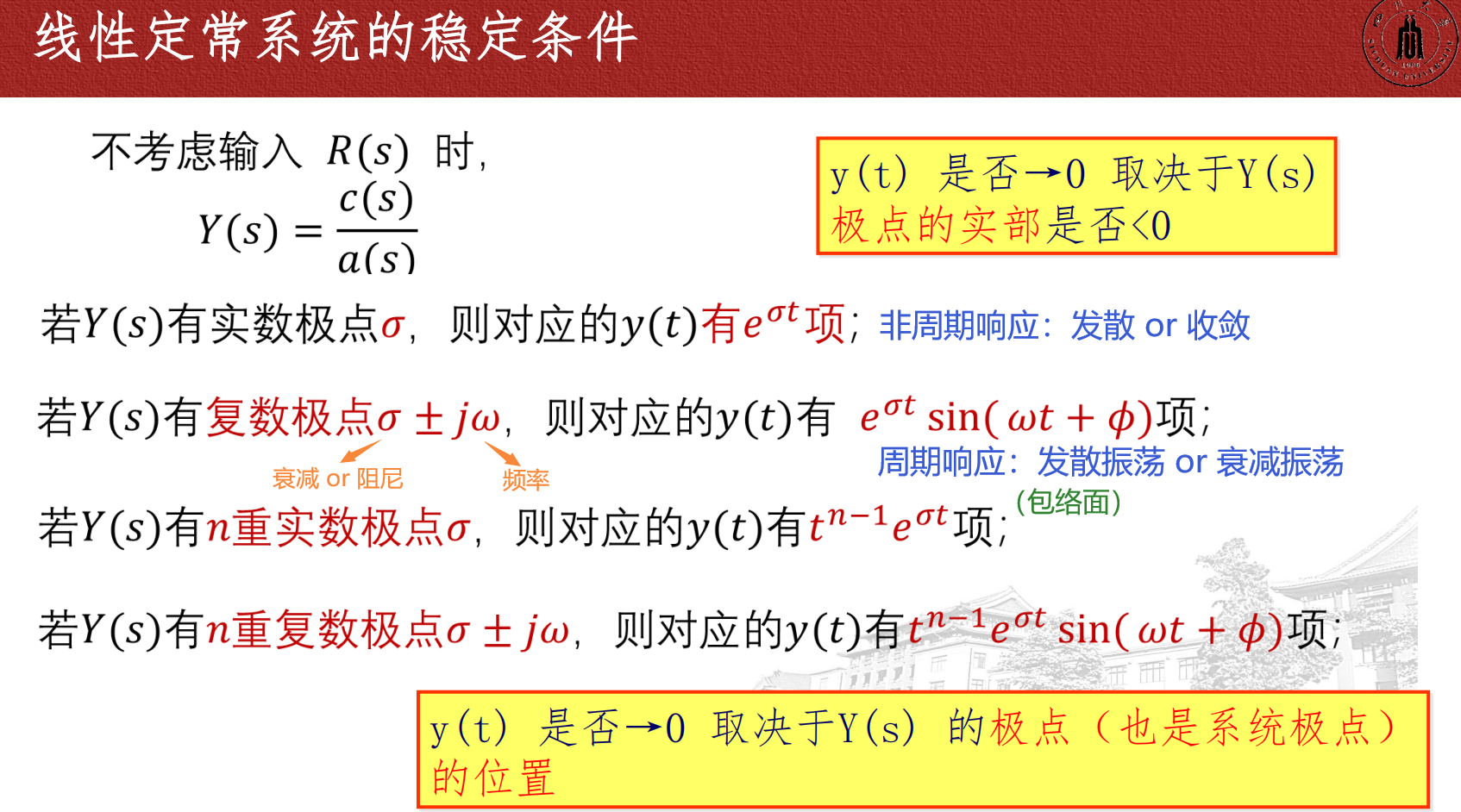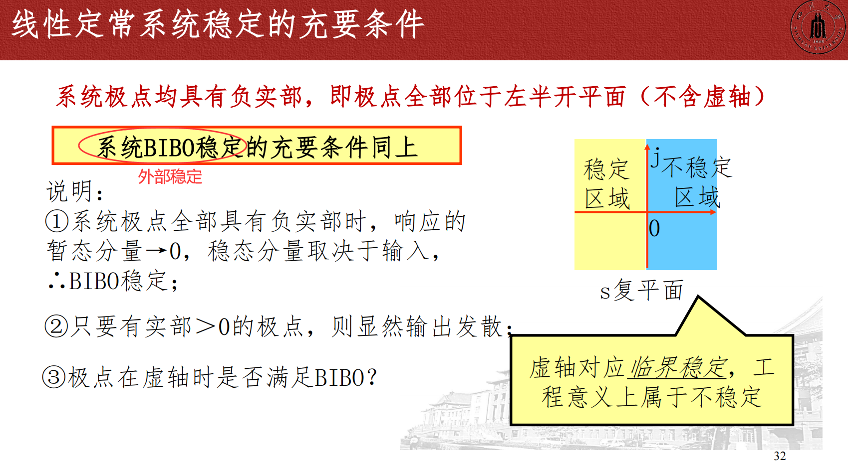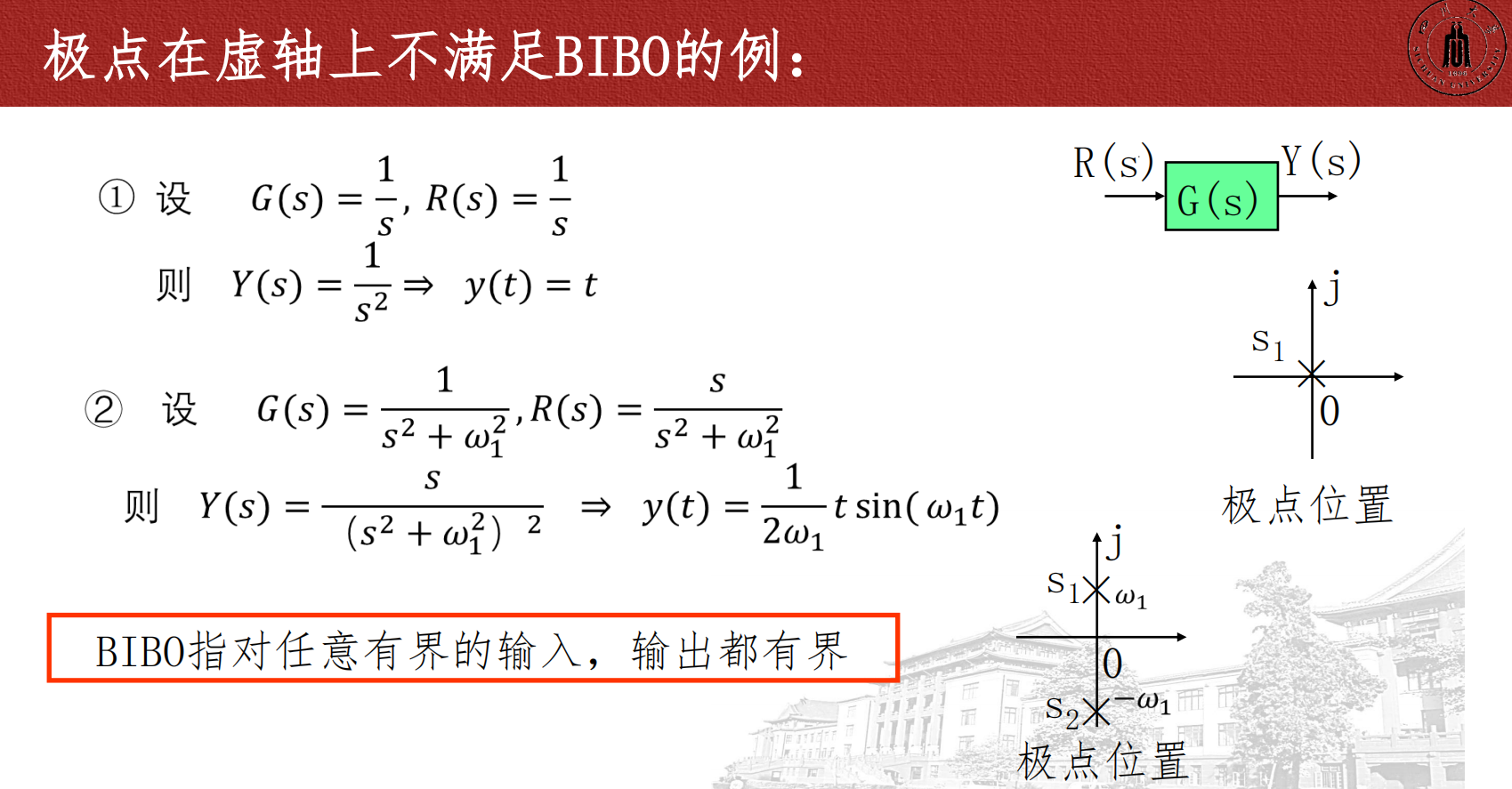 - 在虚轴上的极点是临界稳定,在工程上被视为是不稳定的。